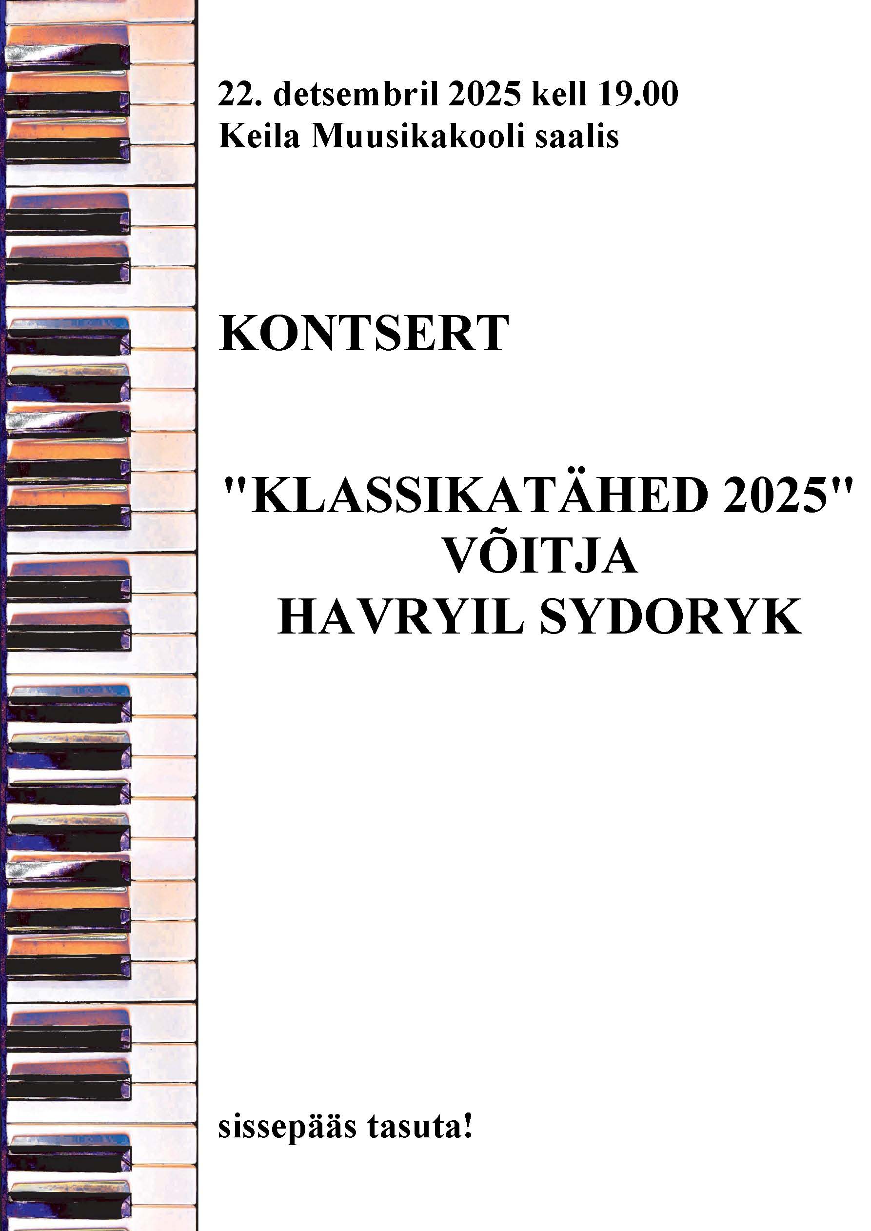 KONTSERT “KLASSIKATÄHED 2025” VÕITJA HAVRYIL SYDORYK JA AGE JUURIKAS kavas: Bach, Schubert/Liszt, Gershwin ja Sydoryk