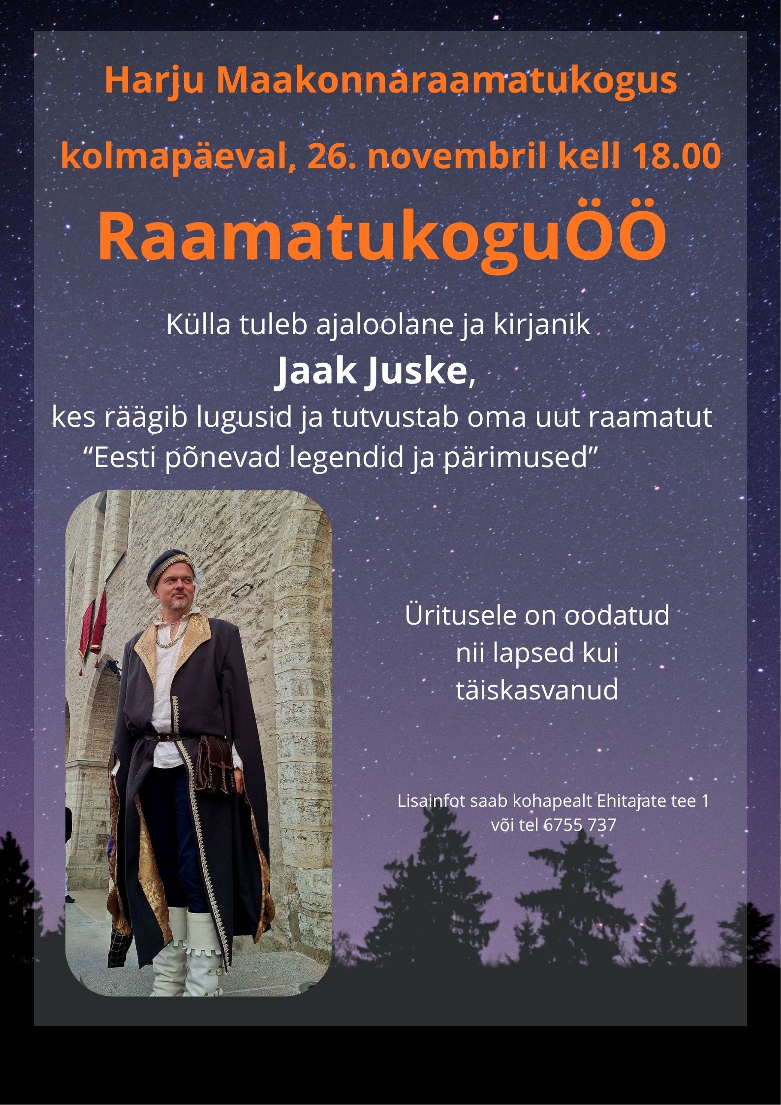 RaamatukoguÖÖ selle aasta külaliseks on ajaloolane ja kirjanik Jaak Juske, kes pajatab meile lugusid ja tutvustab oma uut raamatut “Eesti