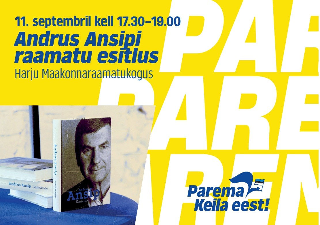 11. septembril algusega kell 17.30 toimub Harju Maakonnaraamatukogus Andrus Ansipi raamatu “Lastelastele” esitlus. Õhtu jooksul räägib autor raamatu sünniloost, jagab