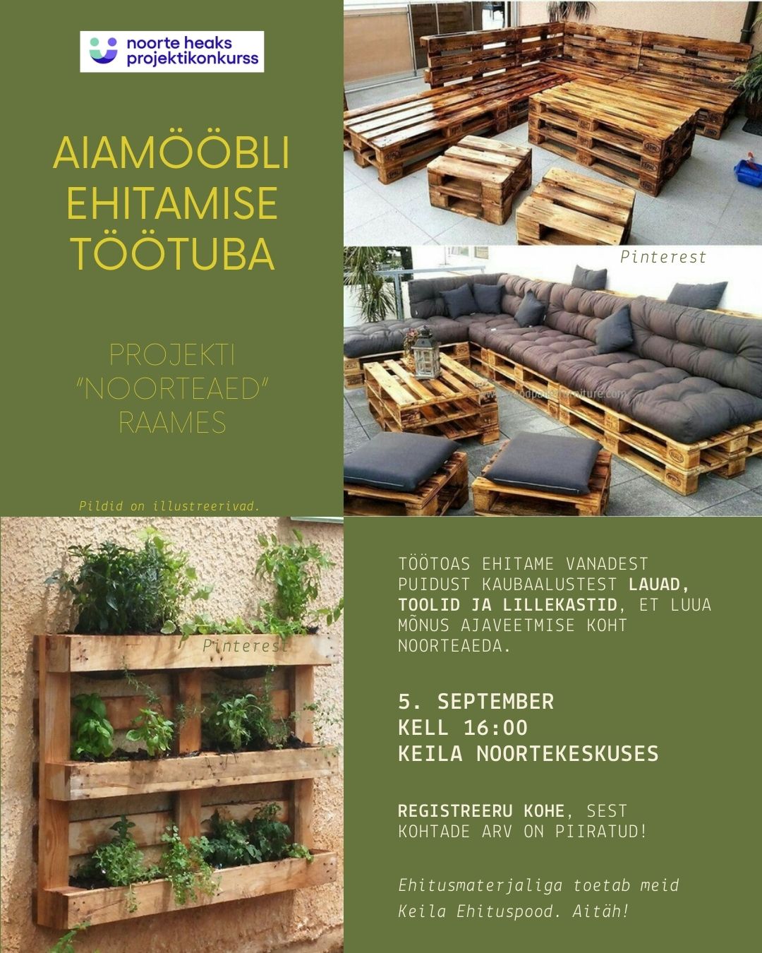 Tule ja löö kaasa Keila Noortekeskuse projekti “Noorteaed” töötoas, kus loome Noorteaiast koos mõnusa ja hubase ajaveetmise ala! Töötoas ehitame lauad, toolid ja