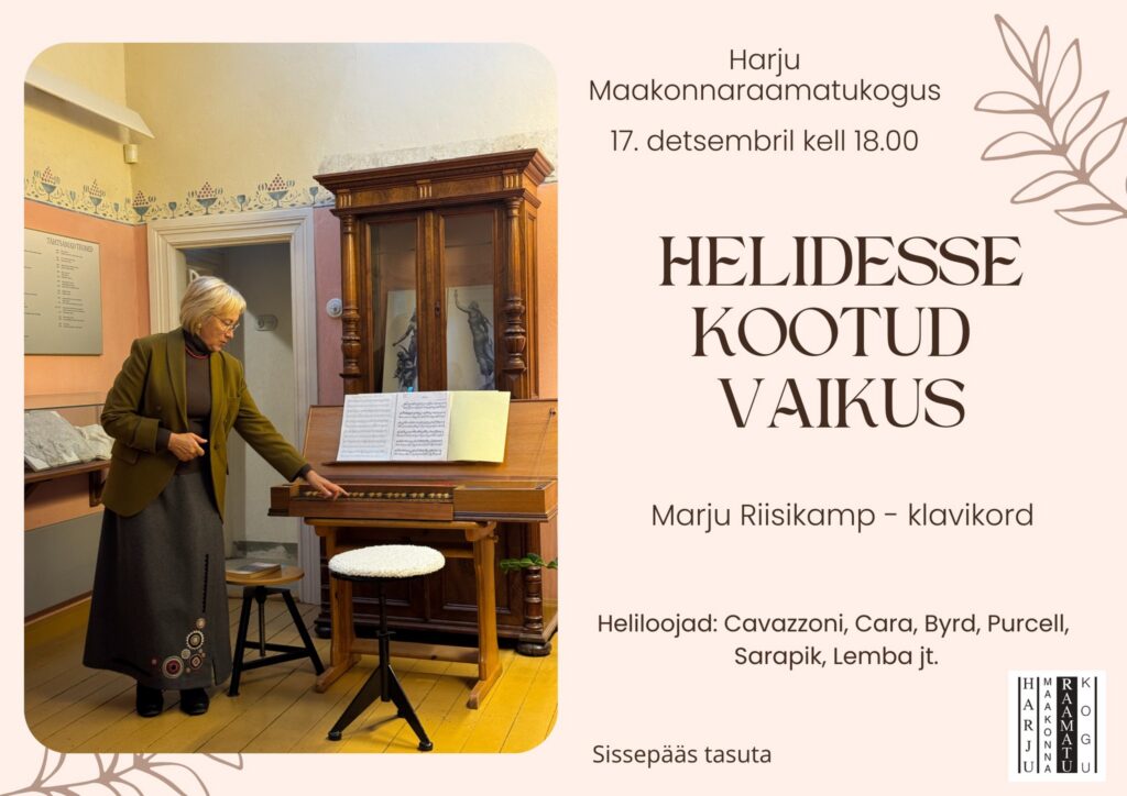 Kolmapäeval, 17. detsembril algusega kell 18.00 toimub Harju Maakonnaraamatukogus kontsert “Helidesse kootud vaikus”.
