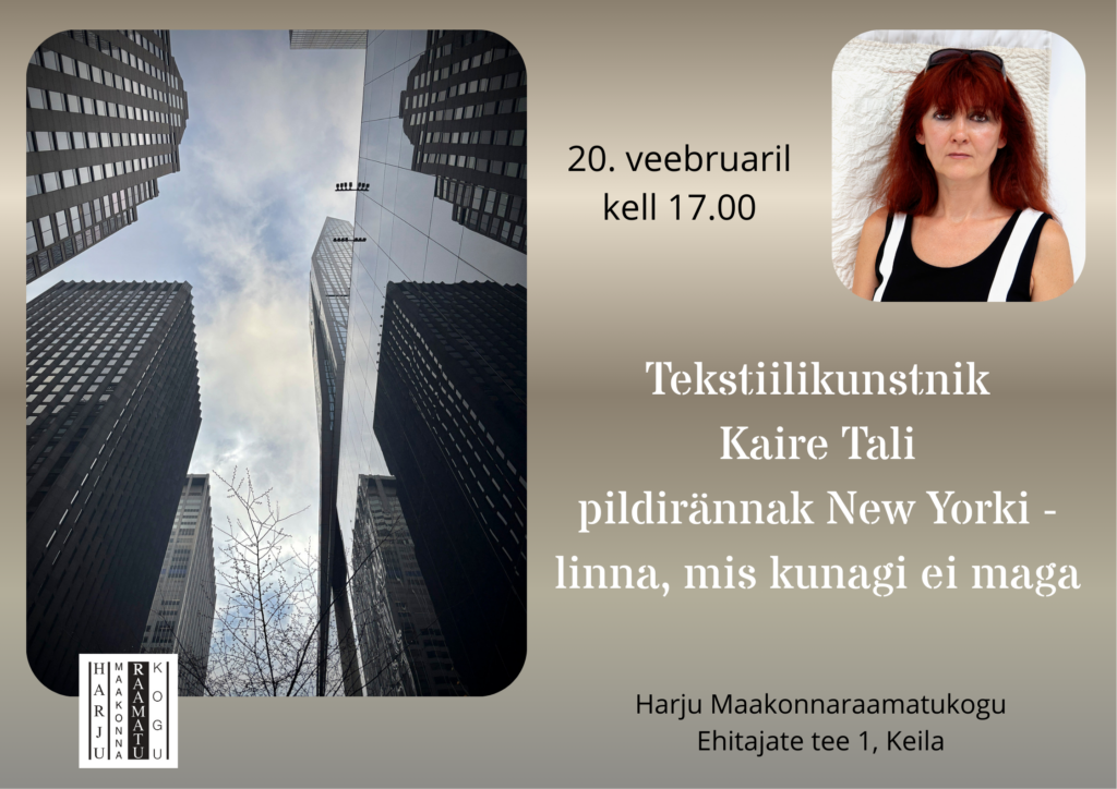 20. veebruaril algusega kell 17:00 viib tekstiilikunstnik Kaire Tali huvilised pildirännakule New Yorki- linna, mis kunagi ei maga.