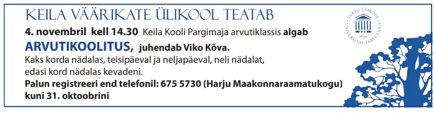 Registreeri 6755730 (Harju Maakonnaraamatukogu) enne 31.oktoobrit